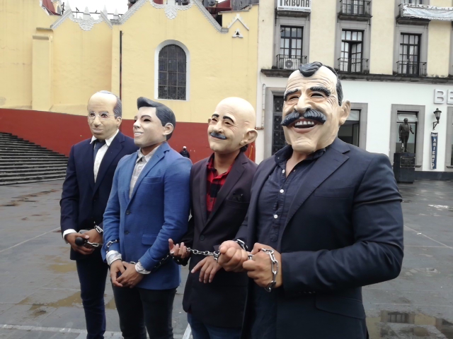 Esta tarde, se observó a un grupo de ciudadanos caracterizados con máscaras de los expresidentes Carlos Salinas de Gortari, Vicente Fox, Felipe Calderón y Enrique Peña Nieto quienes realizaron un performance, para invitar a la ciudadanía para que participen en la consulta popular que se realizará el próximo 1° agosto.
