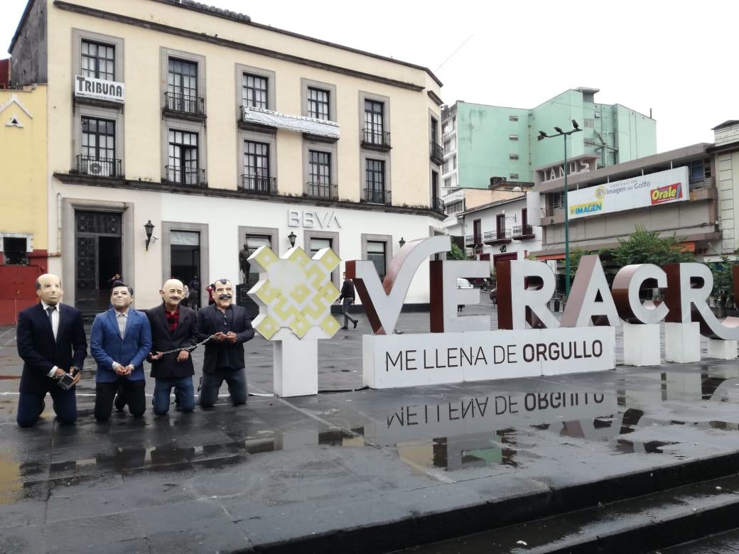 Ciudadanos realizan performance en el centro de Xalapa para promocionar la consulta ciudadana
